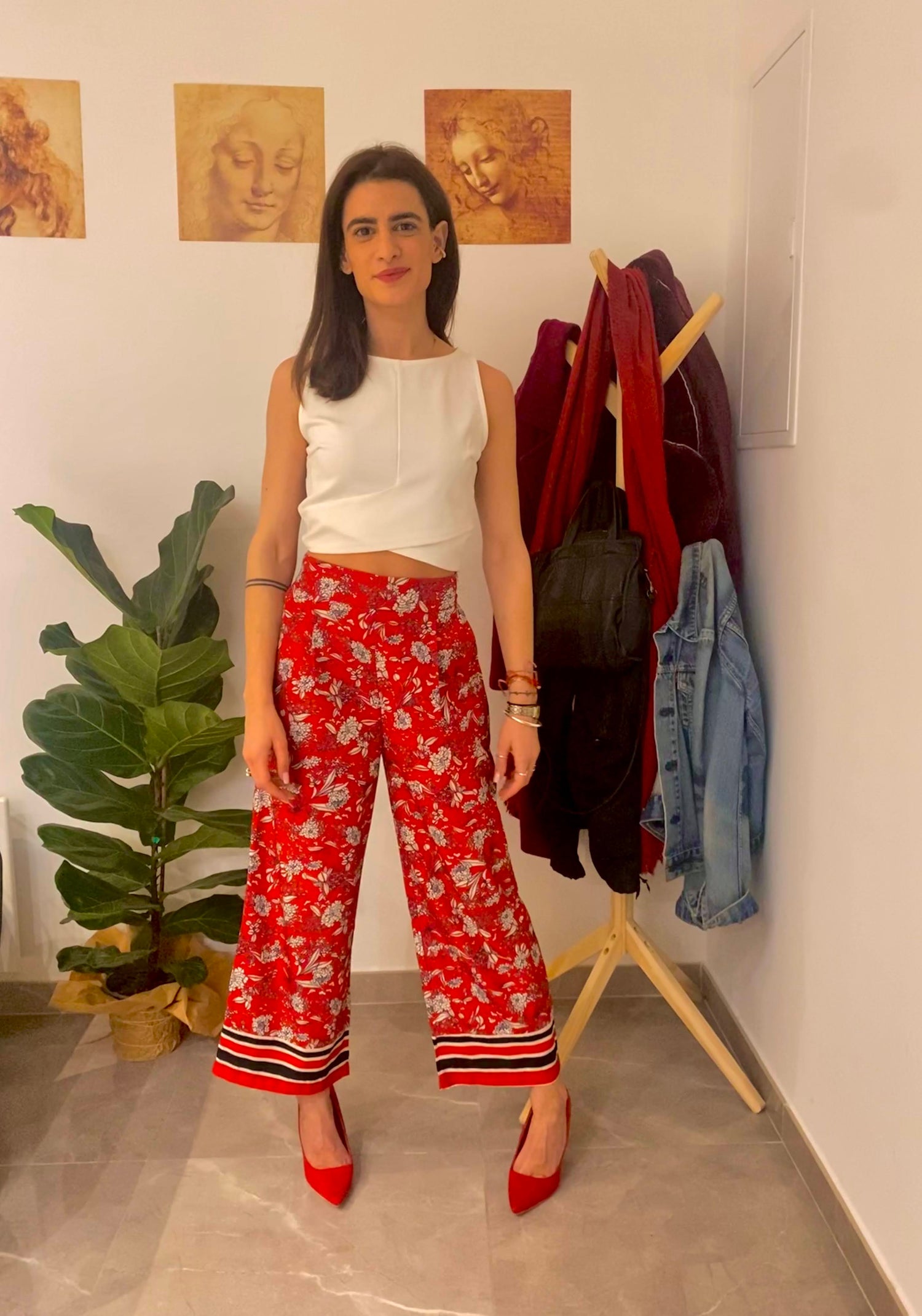 Κόκκινη φλοράλ παντελόνα